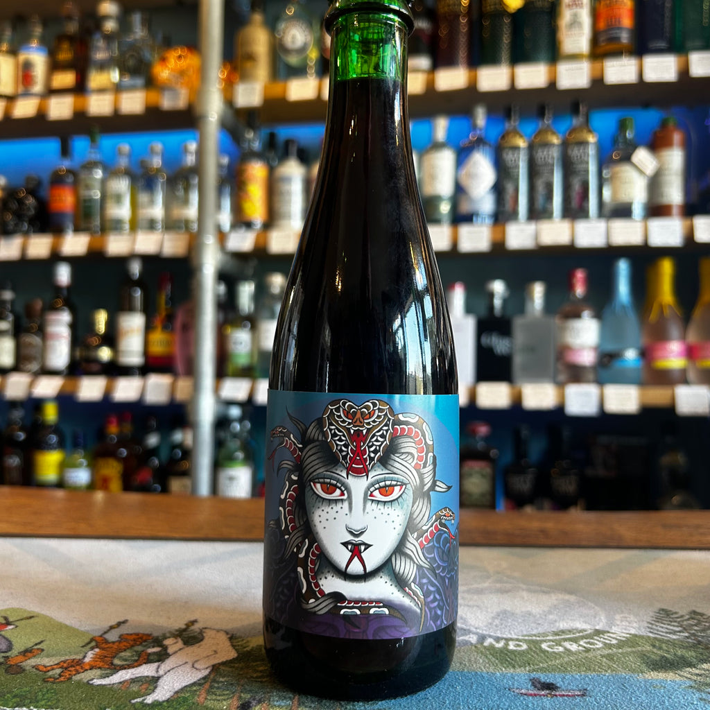 Mixed Fermentation Sour with Blueberries, Hibiscus and Vanilla. Blended from two batches of golden sour beer aged on 400 kg of local Scottish blueberries, in addition to 10 kg of Nigerian hibiscus and 4 kg of Tanzanian vanilla. Brewed with Golden Promise pale malt, wheat, and locally grown oats, the beer was fermented for three months with Brettanomyces and soured using our house culture. The result is a balance of sweetness and acidity, offering notes of blueberry cobbler, berry leaf tea, vanilla, Parma violets, and ripe stone fruit.